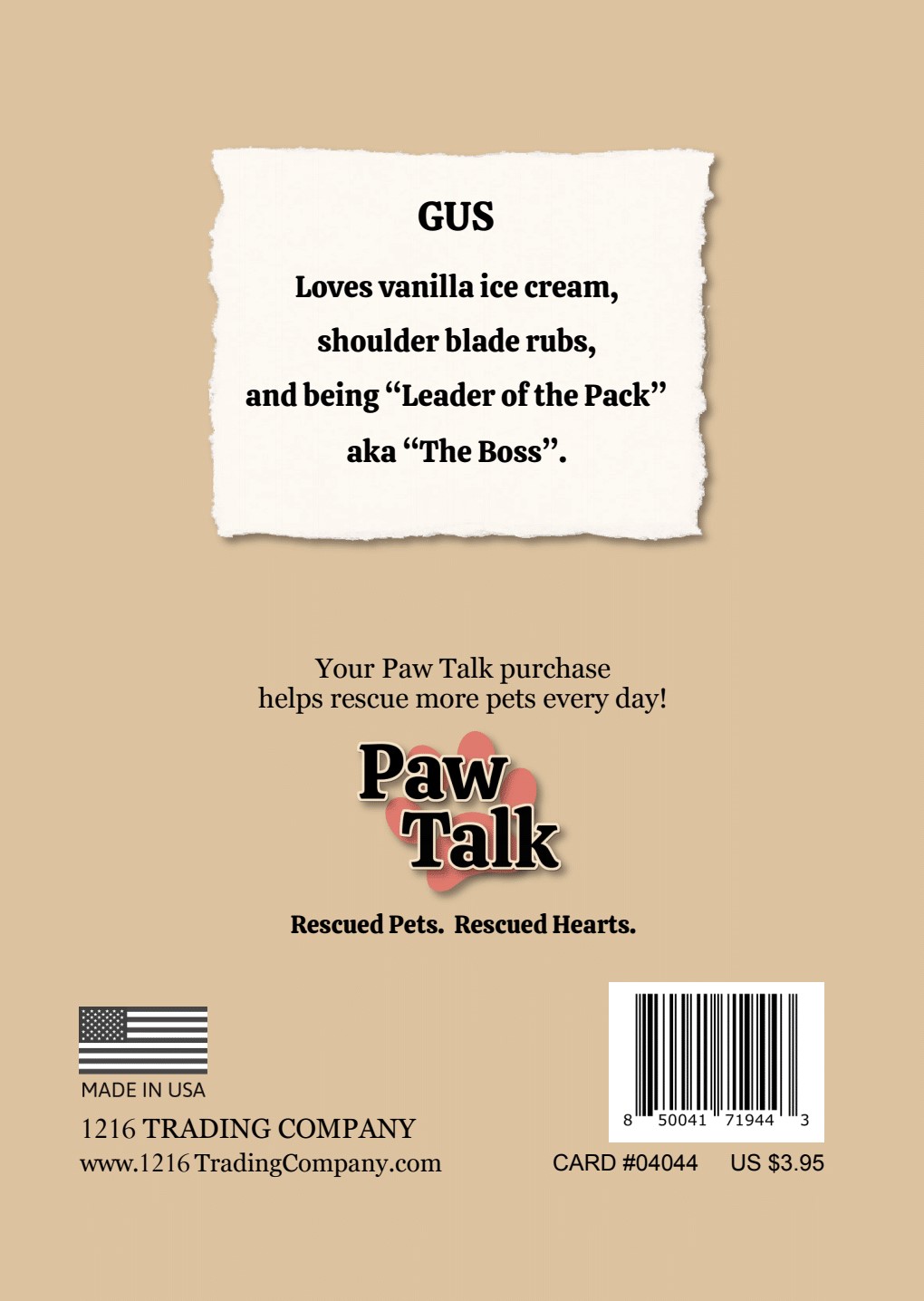 Paw Talk Greeting Cards feature real rescued pets, and help raise money to support pet rescue organizations. Be sure to check out the quirky profiles on the back of each card!