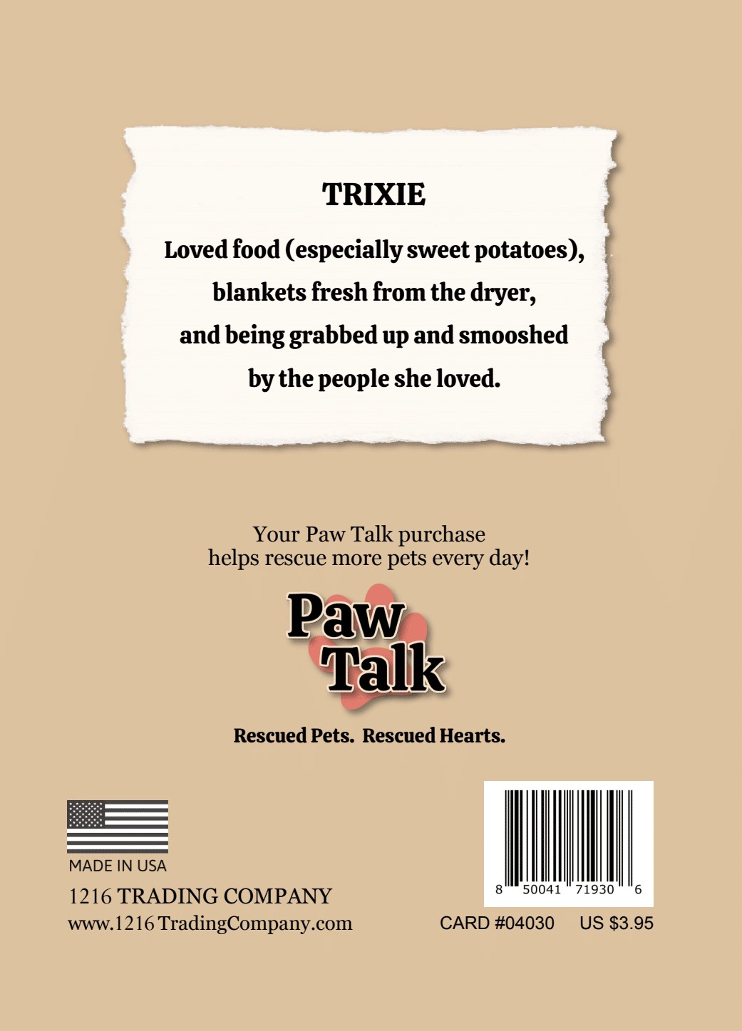 Paw Talk Greeting Card 04030 "Trixie"