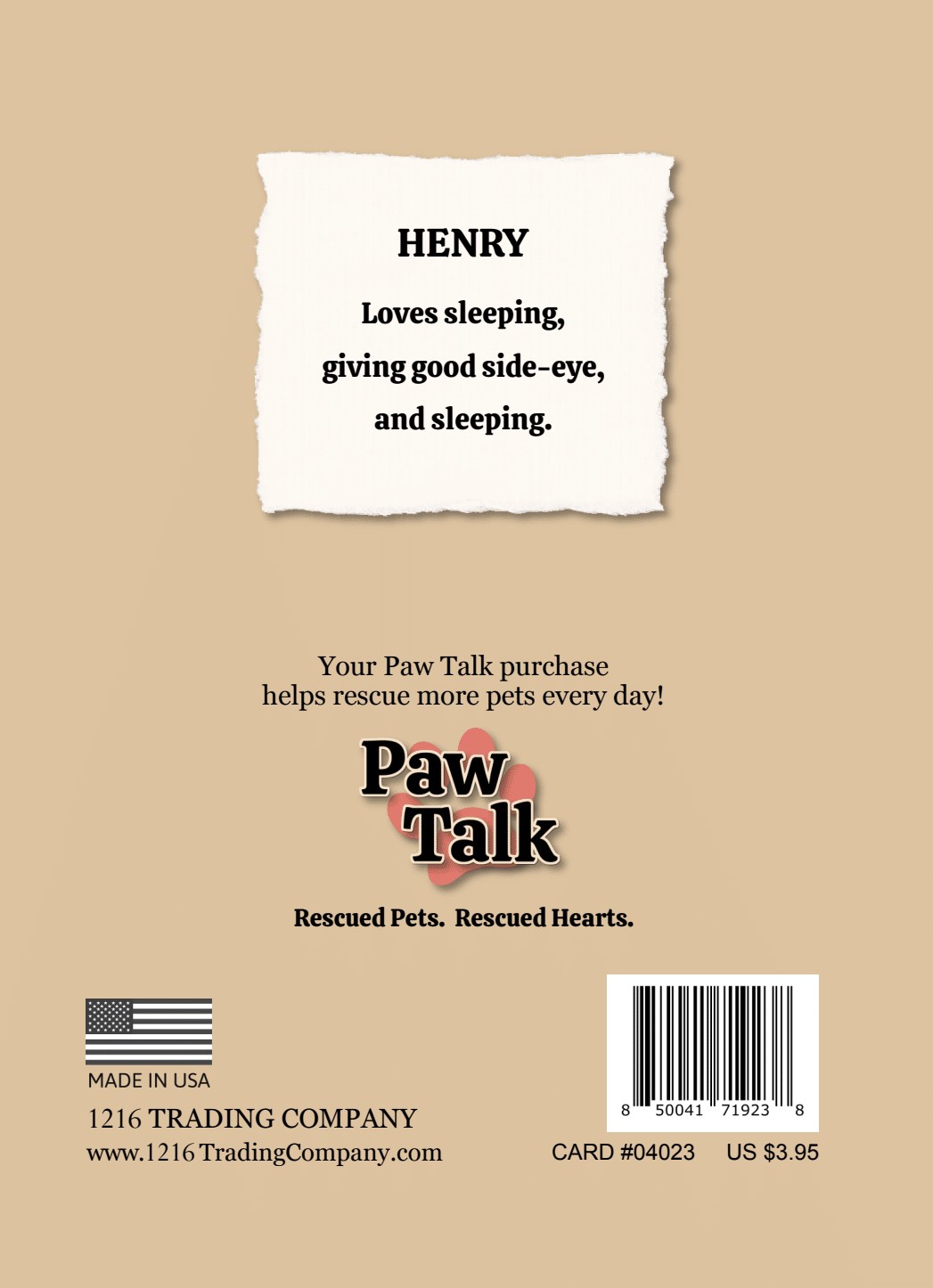 Paw Talk Greeting Cards feature real rescued pets, and help raise money to support pet rescue organizations. Be sure to check out the quirky profiles on the back of each card!