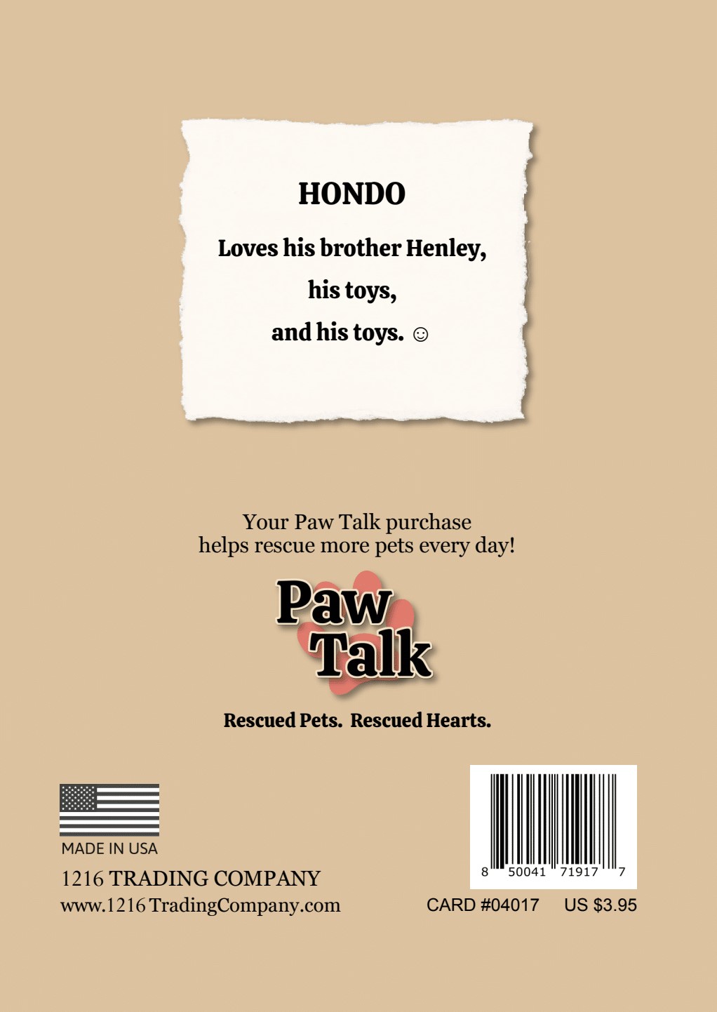 Paw Talk Greeting Cards feature real rescued pets, and help raise money to support pet rescue organizations. Be sure to check out the quirky profiles on the back of each card!