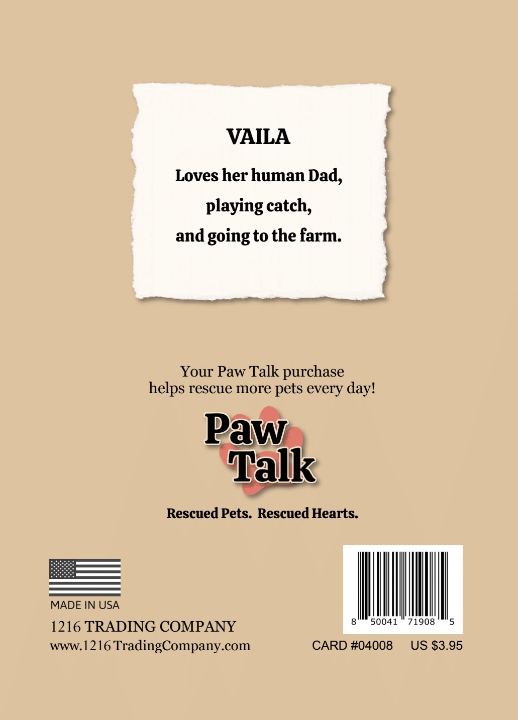 Paw Talk Greeting Card 04008 "Vaila"
