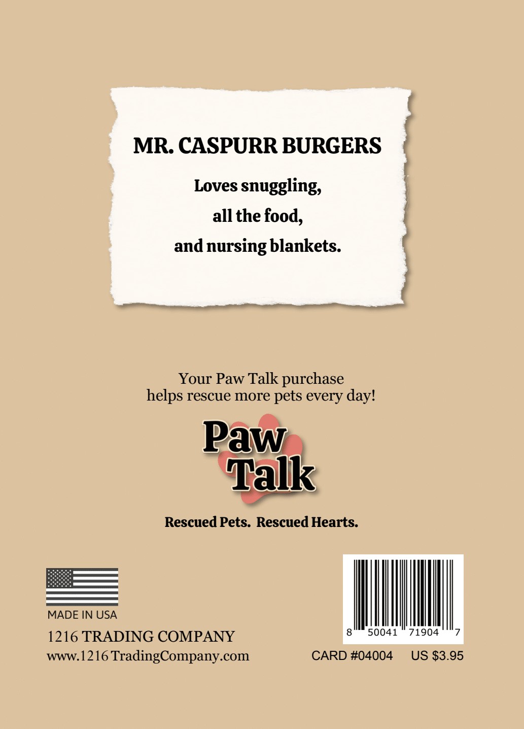 Paw Talk Greeting Card 04004 "Mr. Caspurr Burgers"